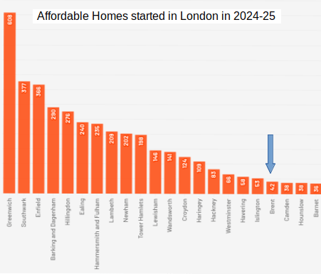 According to recent data, Brent is falling behind in the building of affordable housing. For new construction starts, Brent sits close to the bottom of the league table of London boroughs. During last year, Brent started only ca. 17% of affordable projects that are being built in nearby Ealing borough or Hammersmith and Fulham borough.